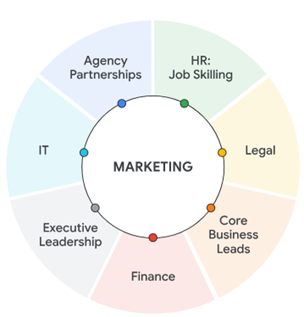 - Involvement from these teams can help you clear major collaboration hurdles, by preventing underfunding, and establishing vital governance, ethical guidelines, and data strategy that marketing can’t handle on its own.