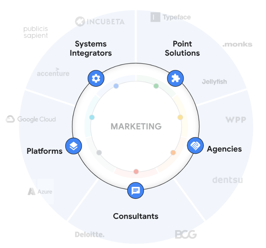 - Four key players: Agencies (AI-driven creative), point solutions (specialized tools), platforms (infrastructure), and consultants/system integrators (strategic guidance).